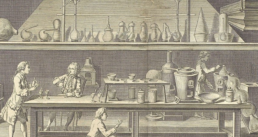 No século XVIII, que marcou o nascimento da química moderna, verificou-se a criação de laboratórios químicos e de outros locais - gabinetes e museus de história natural - destinados à investigação da natureza.