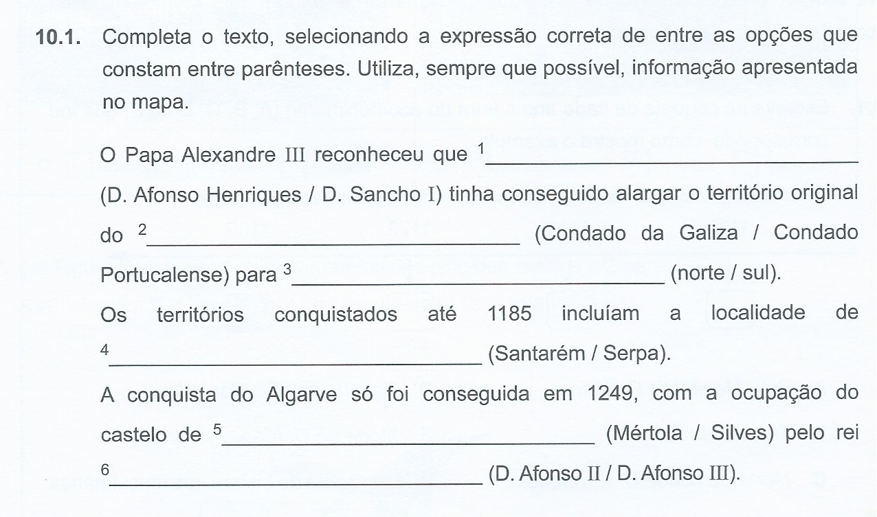Formação do reino de Portugal/Reconquista - exercício
